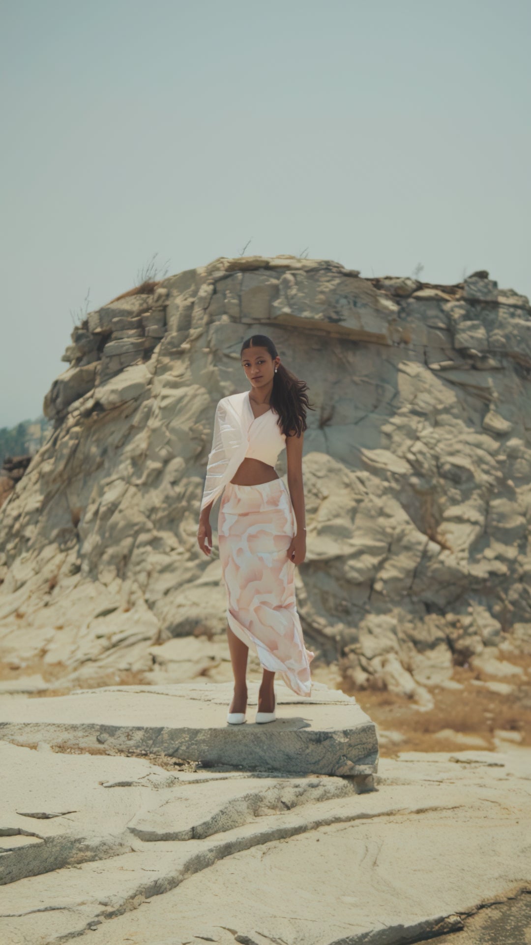 DRAPED CROP TOP WITH FULL LENGTH SKIRT
